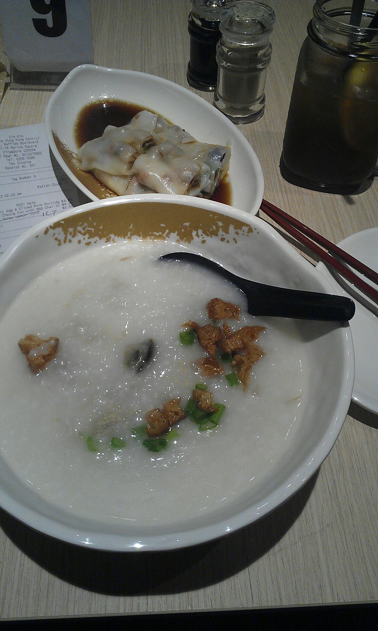 Had the century congee/porridge (cooked from rice grains), steam rice flour rolls (chee chong fan) with BBQ pork and Ice Lemon Tea.